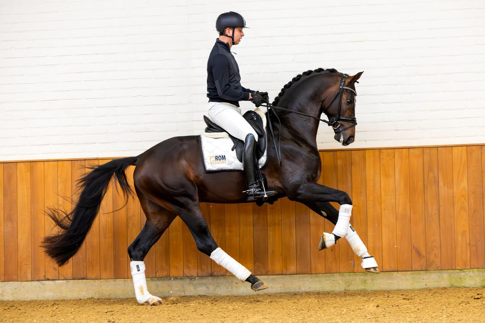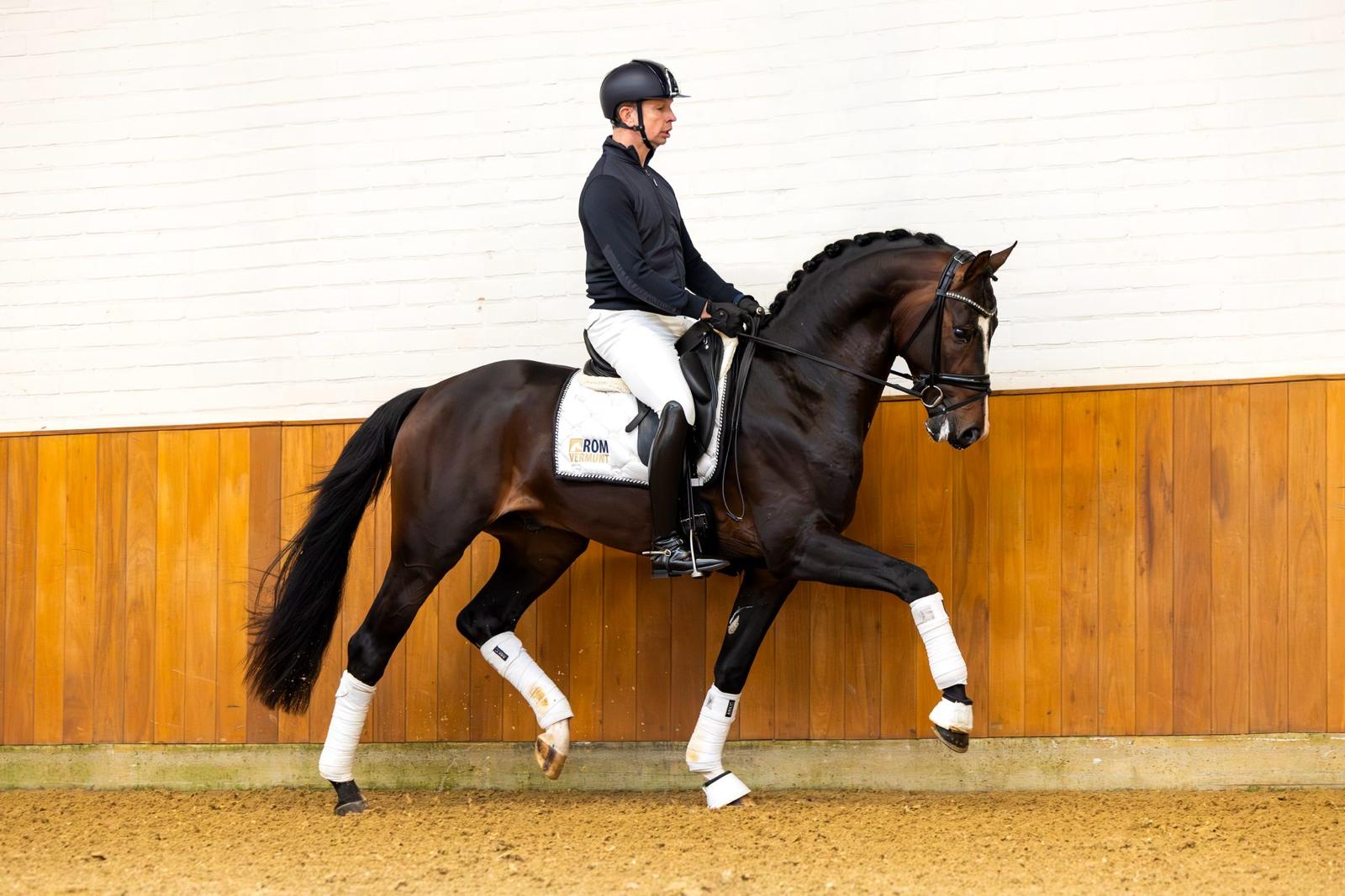 We bought Travolta Norel together with Rom Vermunt from his breeders André and Martin van Norel, who are still co-owners, raised the stallion, trained him, and presented him during the KWPN stallion inspection. Travolta Norel was certainly one of the highlights of the inspection. He performed very well during the first assessment and again in the second round in Den Bosch. He was therefore selected for the performance test.